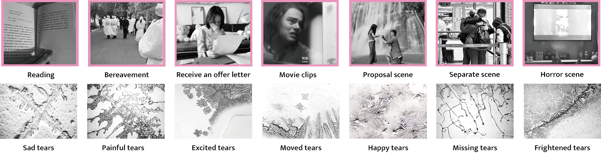 Collect crystal maps of tears for different emotions